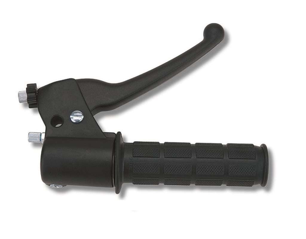 Comando Gas Ciclomotore / Scooter Completo Di Leva In Resina Acetalica, Manopola Nera Ed Impianto Stop. Senza Attacco Per Dispositivo Elettrico. (Codice Leva 3833.73) Materiale: Alluminio Nero. Mono Cavo