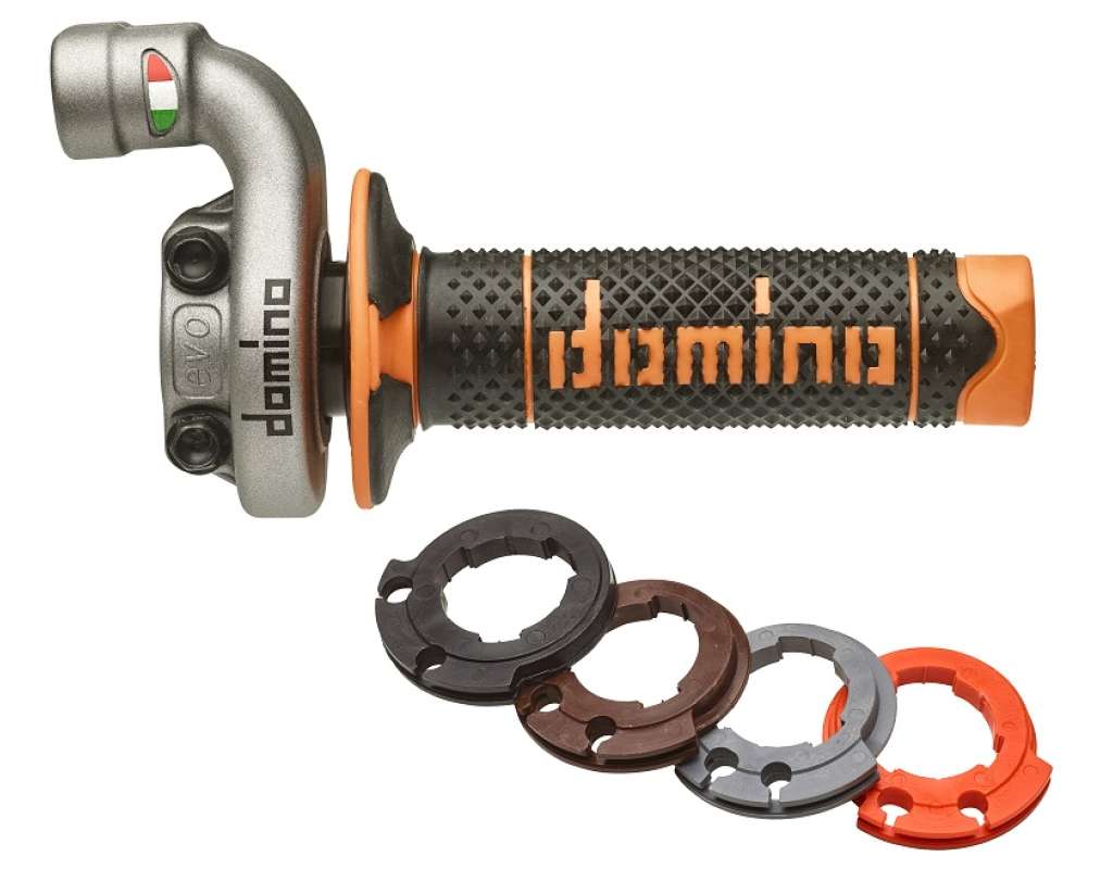 Comando Gas Off Road Cross / Enduro Per Ktm Offroad 4T Dal 2016, Adatto A Cavi Originali, Completo Di Manpola Bicolore Nero/Arancio, Con Quattro Ghiere Materiale: Alluminio Grigio. 2 Cavi Pushpull Rapidità (Ghiera Grigia): 3,0 °/Mm Corsa Max (Ghiera Grigia): 38 Mm Rapidità (Ghiera Marrone): 2,8 °/Mm Corsa Max (Ghiera Marrone): 39 Mm Rapidità (Ghiera Arancio): 2,7 °/Mm Corsa Max (Ghiera Arancio): 43 Mm Rapidità (Ghiera Nera): 2,6 °/Mm Corsa Max (Ghiera Nera): 39 Mm